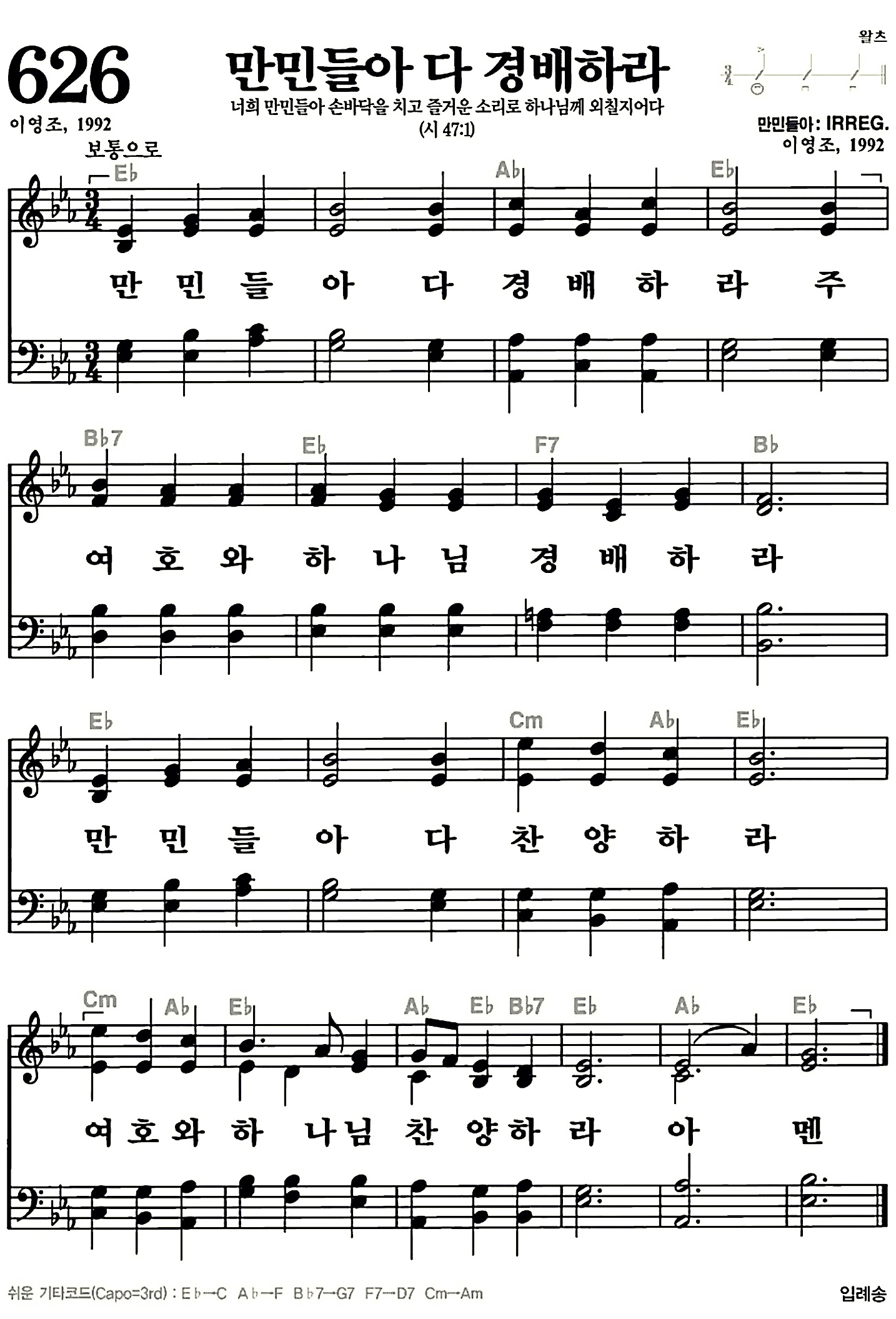 626장-만민들아 다 경배하라