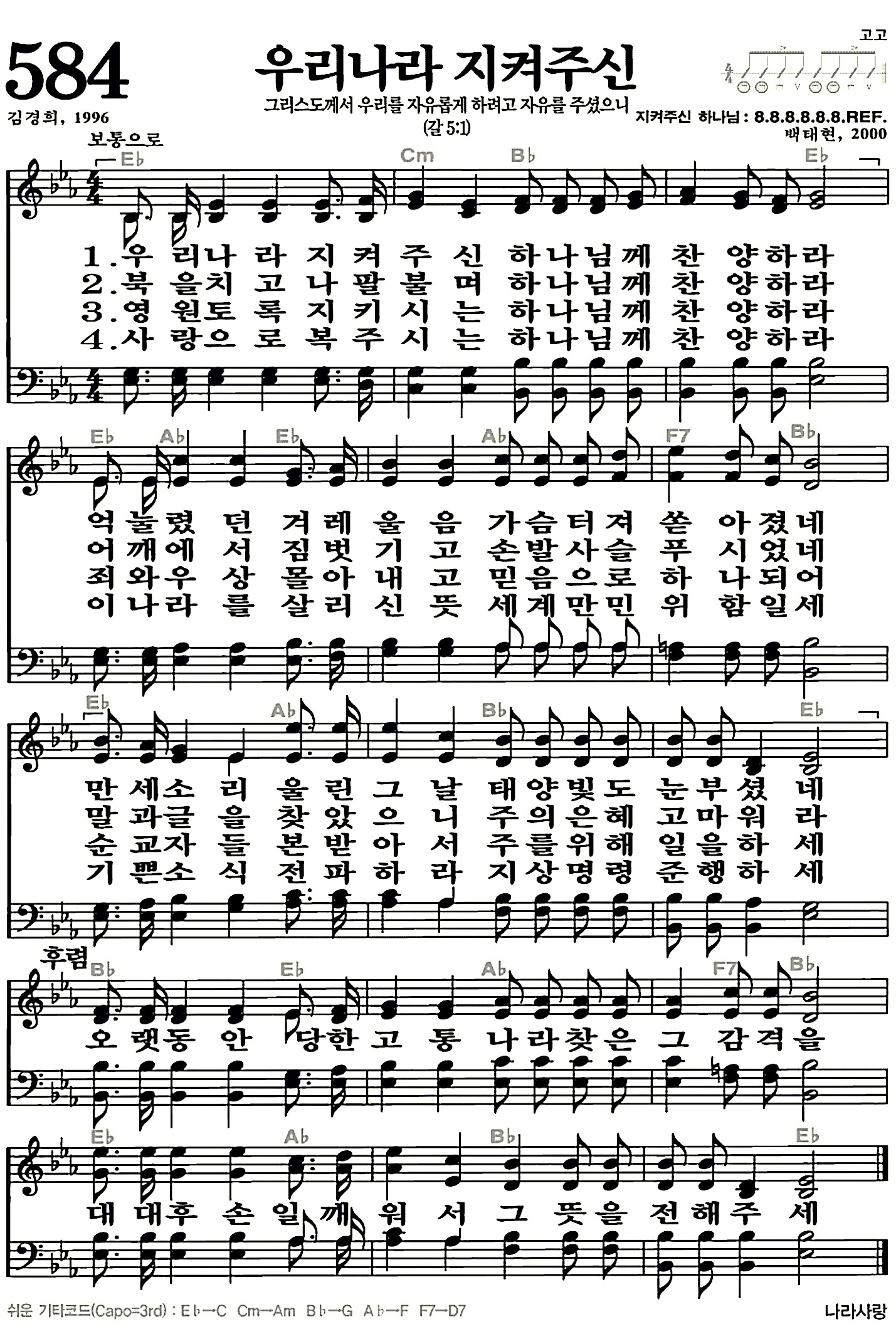 584장-우리나라 지켜주신