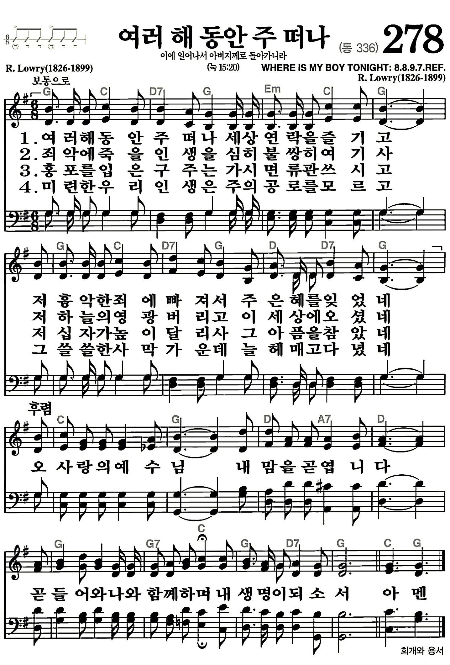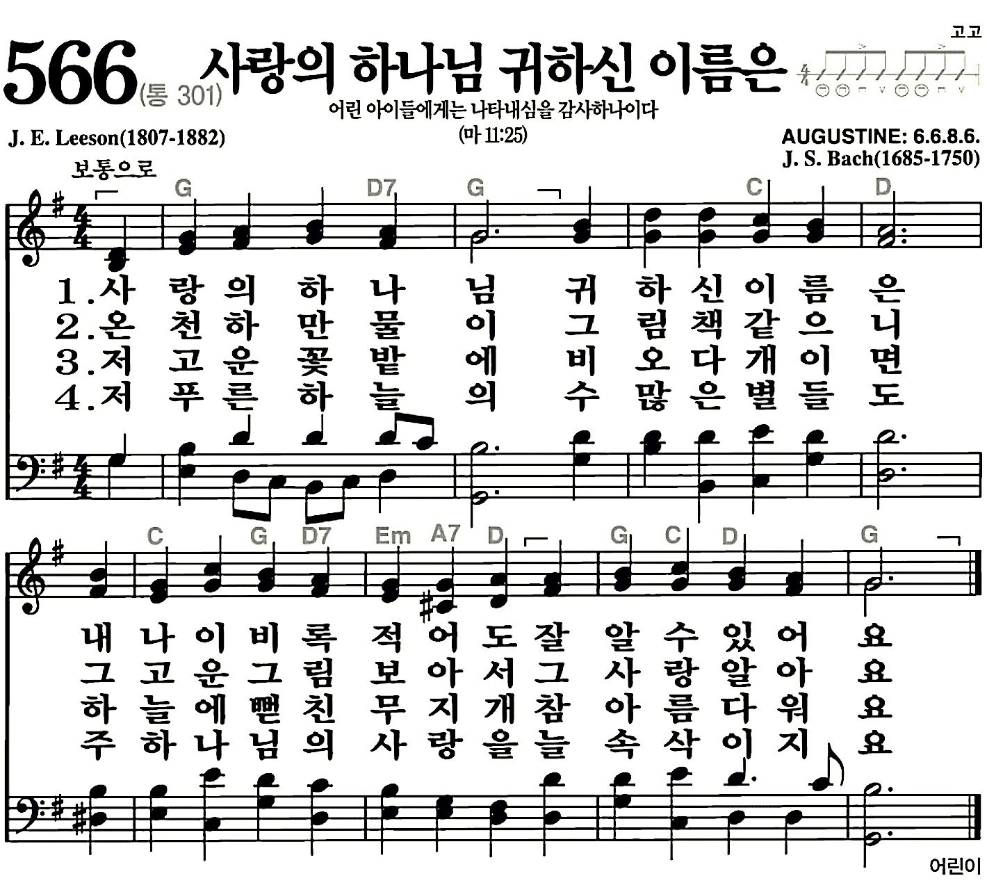 566장-사랑의 하나님 귀하신 이름은