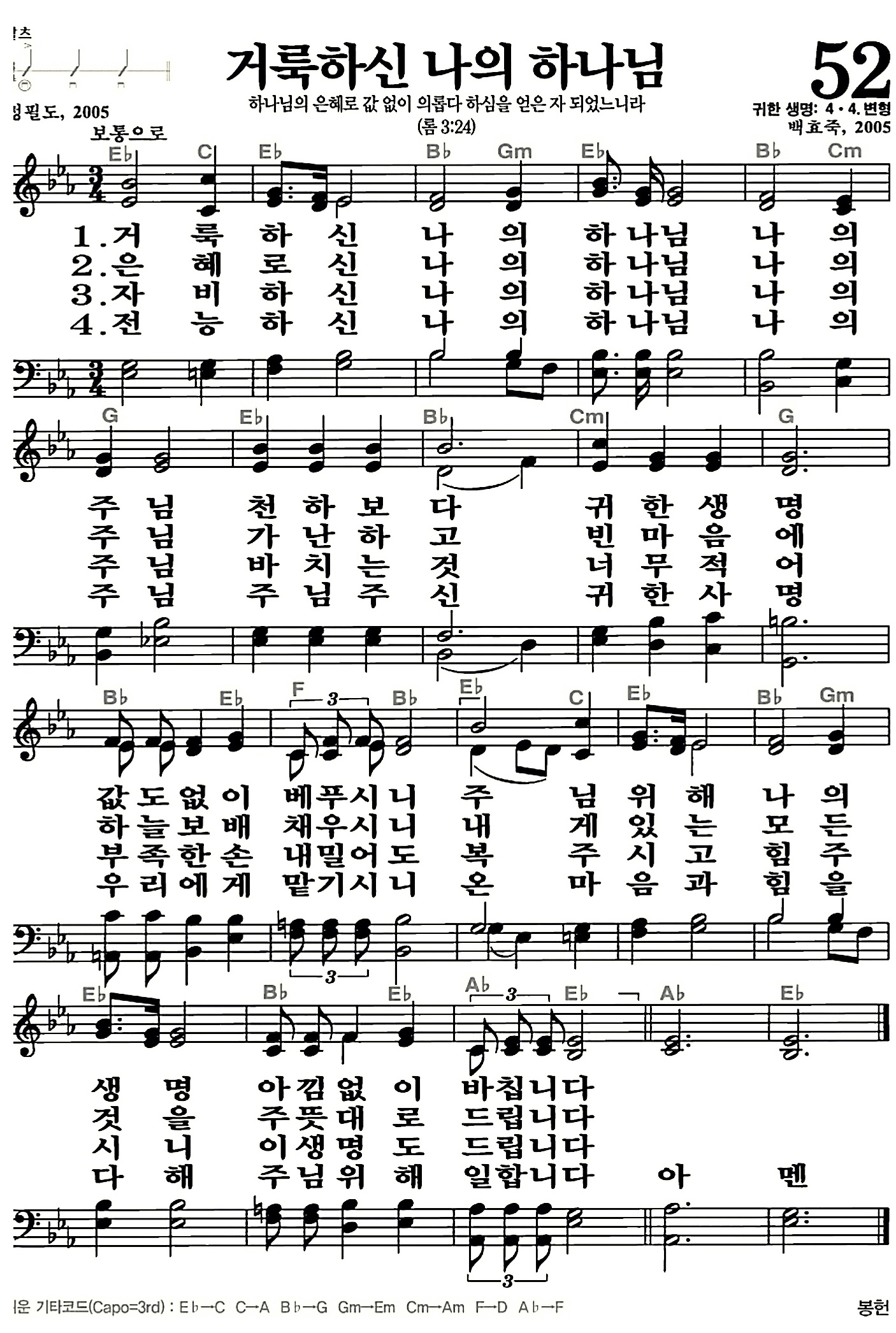 052장-거룩하신 나의 하나님
