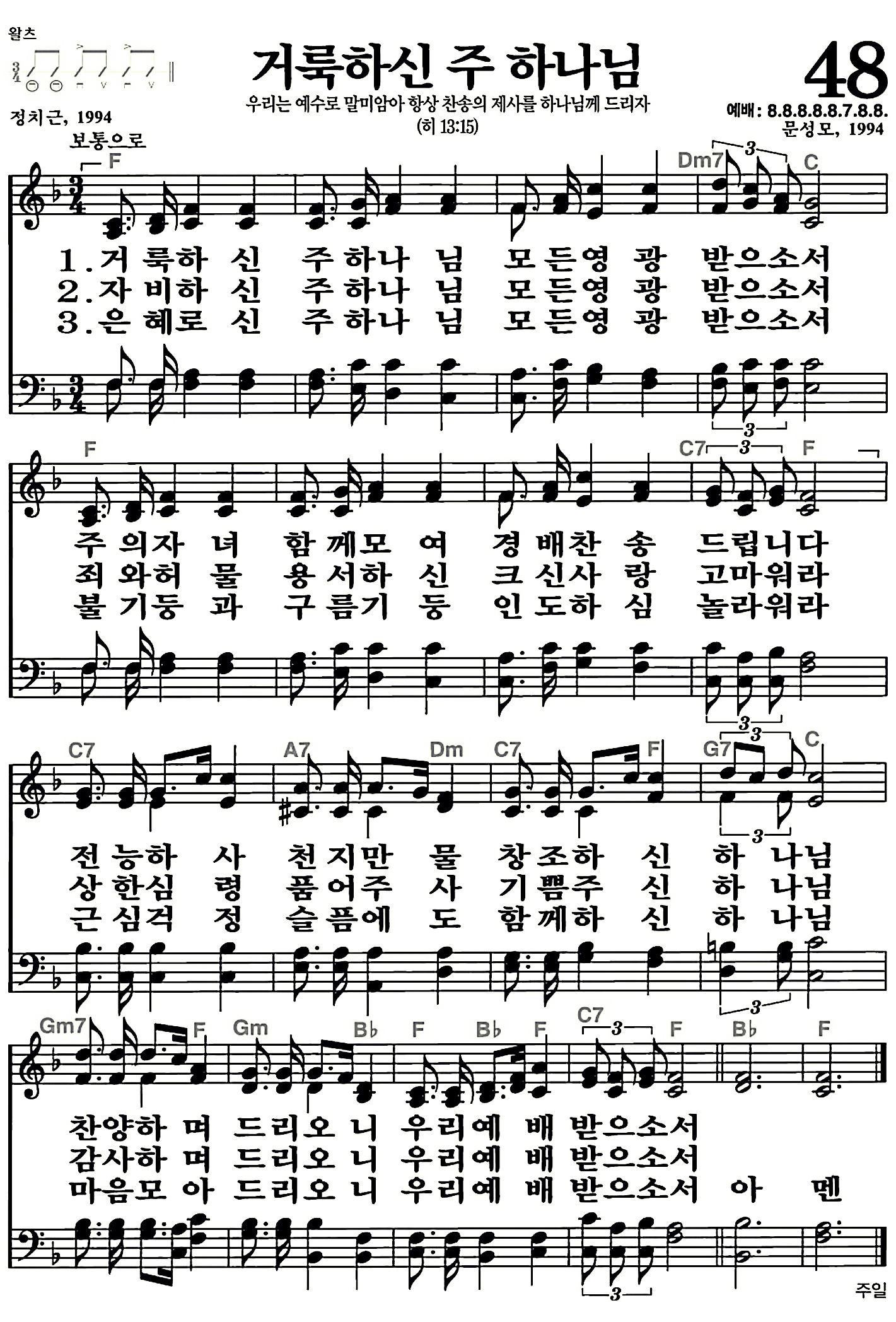 048장-거룩하신 주 하나님