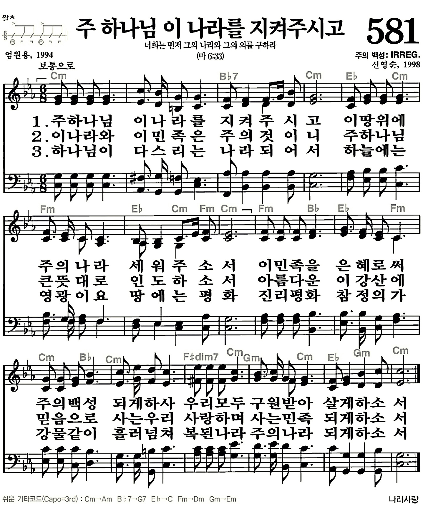 581장-주하나님 이 나라를 지켜주시고