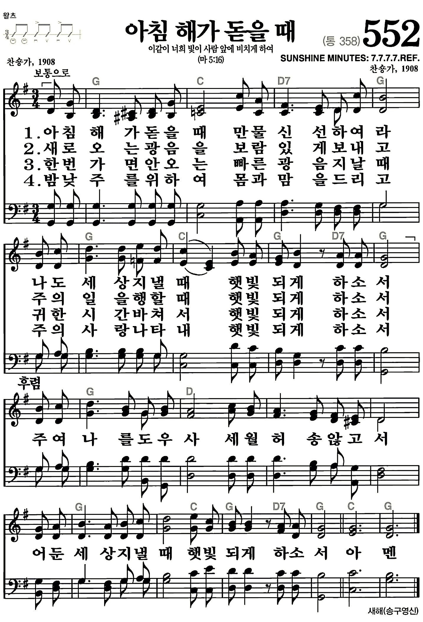 552장-아침 해가 돋을 때