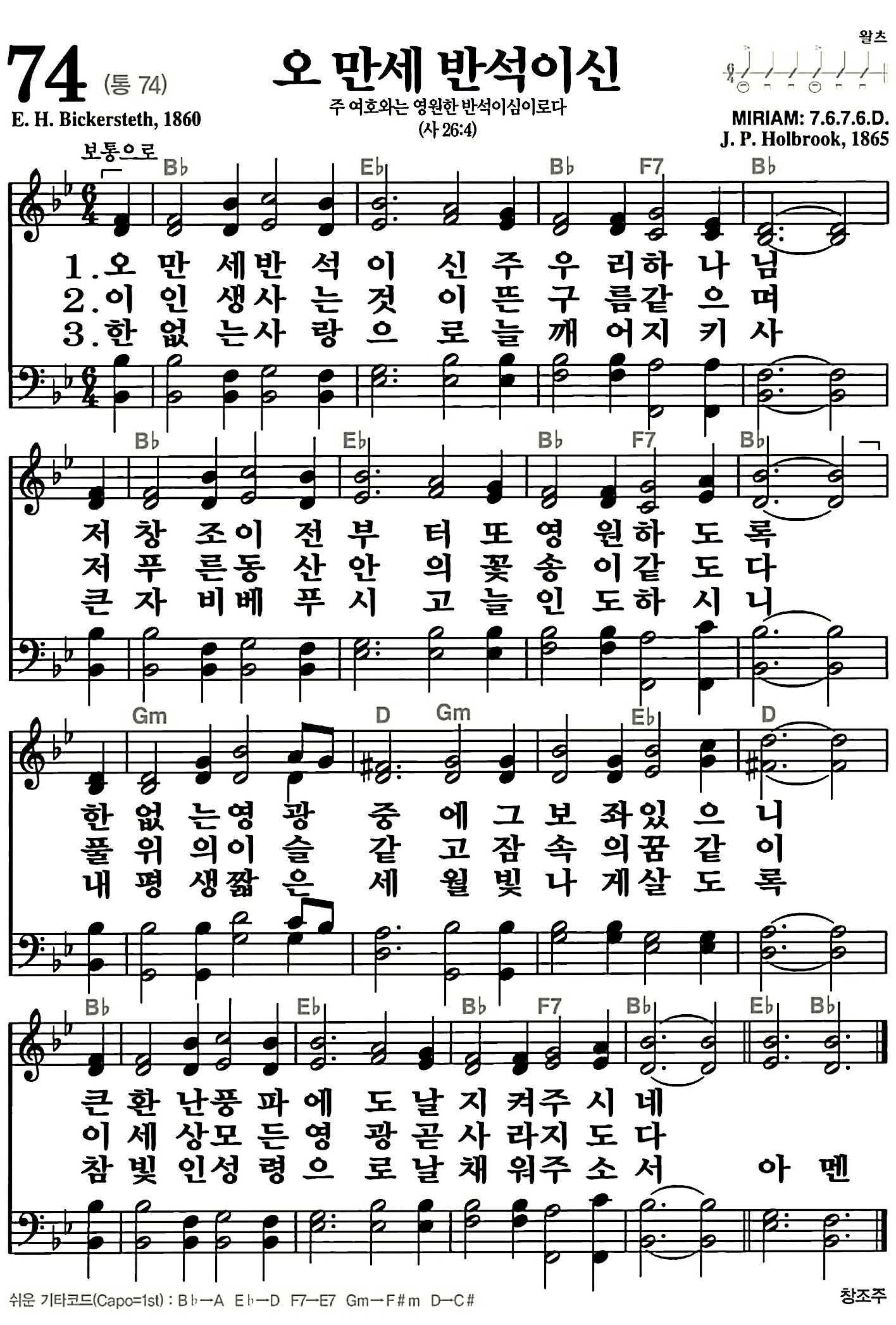 074장-오 만세 반석이신